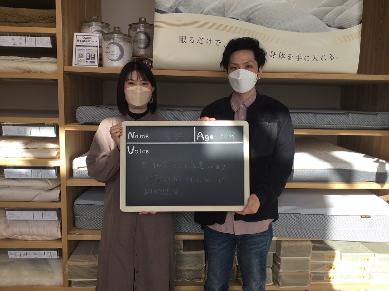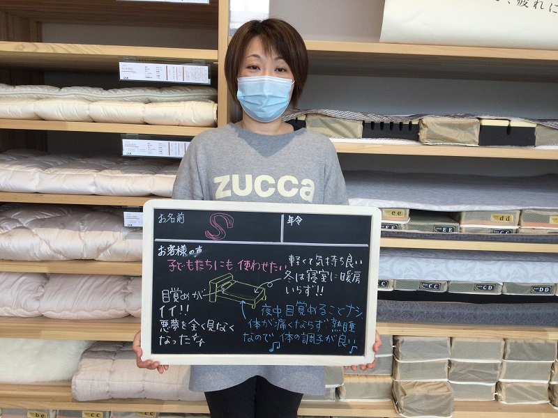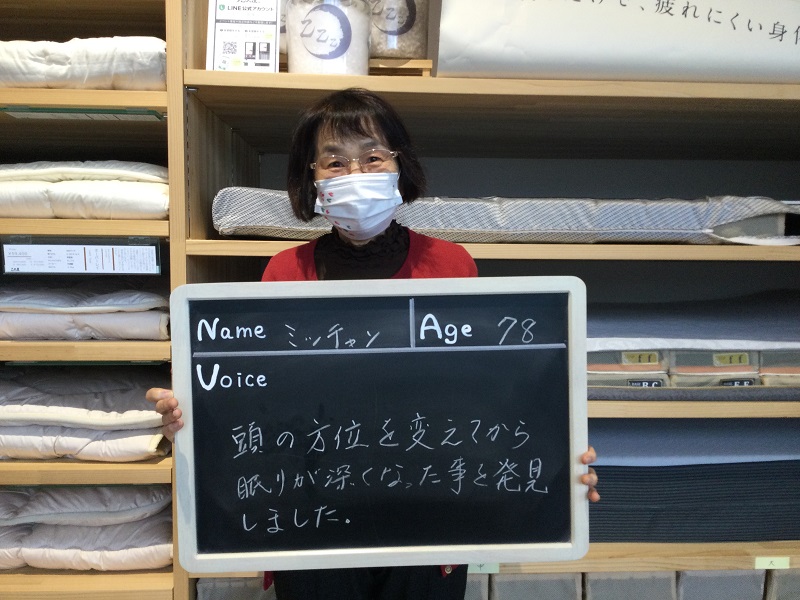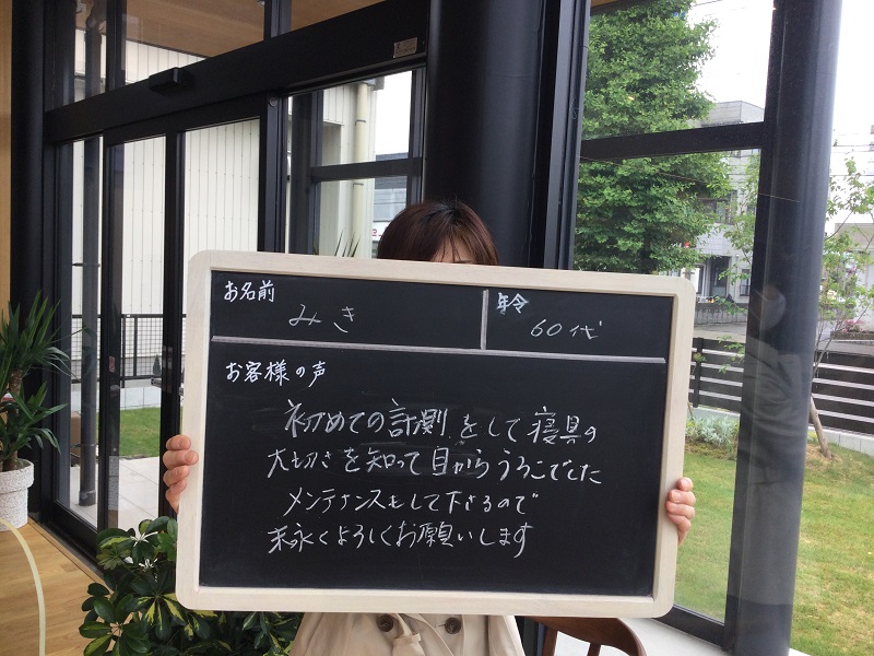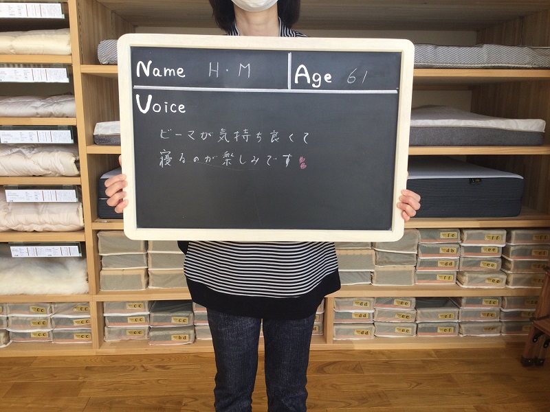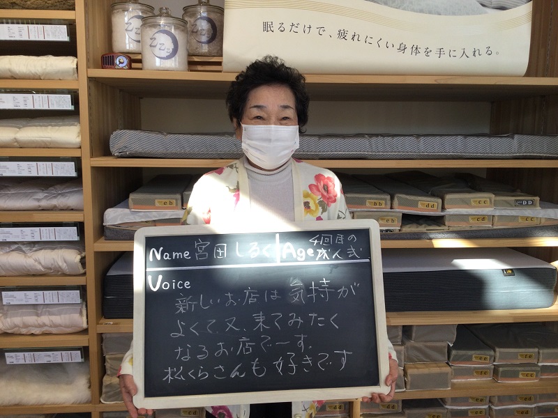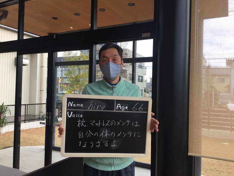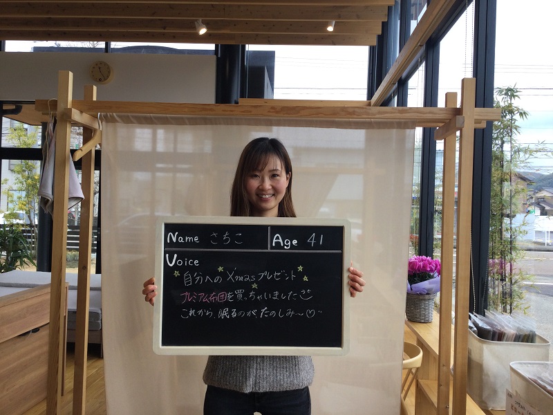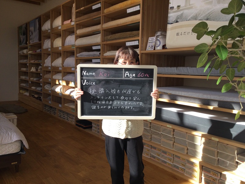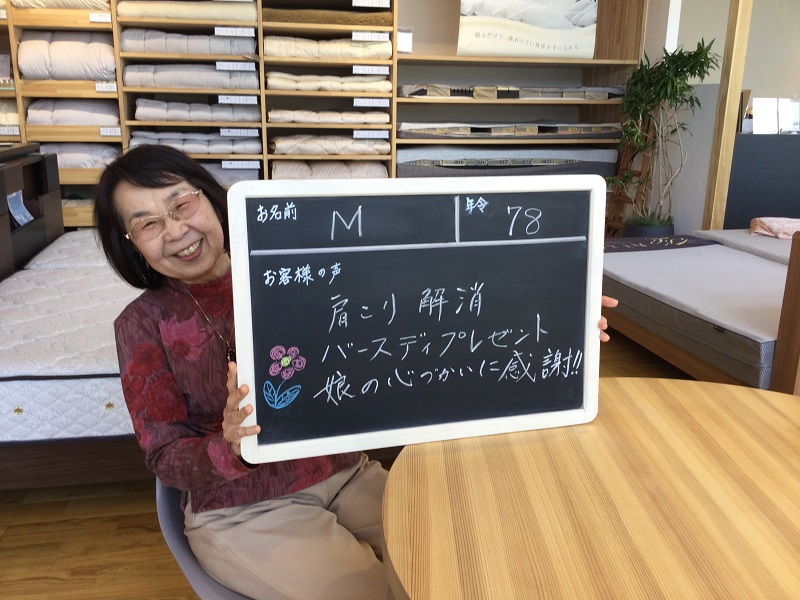 初めての計測をして、寝具の大切さを知って目からうろこでした。メンテナンスもしてくださるので末永くよろしくお願いします。