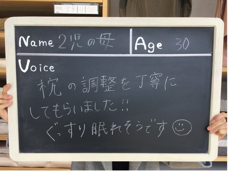 オーダー枕で心地良く眠れるようになりました!!丁寧な接客に感謝です!