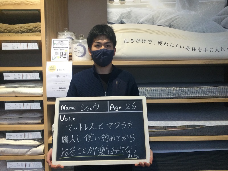 オーダーメイド枕など快適な睡眠ライフを送っています♪お店もきれいで広くてGOOD★