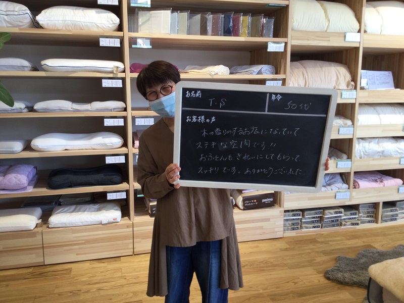 木の香りのするお店になっていてステキな空間です!おふとんもきれいにしてもらってスッキリです。ありがとうございました。