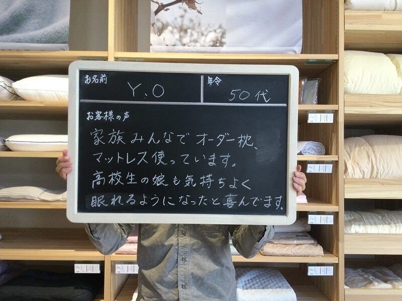 家族みんなでオーダー枕、マットレス使っています。高校生の娘も気持ちよく眠れるようになったと喜んでます。