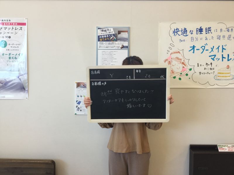 初めての計測をして、寝具の大切さを知って目からうろこでした。メンテナンスもしてくださるので末永くよろしくお願いします。